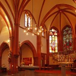Noch war die Kirche nicht ganz fertig. So folgten 1902 der Hochaltar, die Kanzel, die Beichtstühle und die Kommunionbank. Ebenso die Marienstatue, die Säulenheiligen und die Tympana über den Eingängen gestaltet von dem Bildhauer Karl Holstein aus Griesheim.